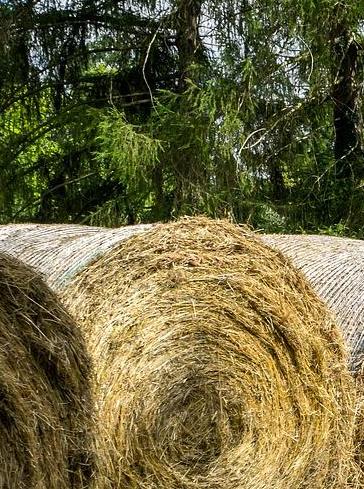 Wir achten bei der Heuernte darauf, dass das Heu immer schön sonnengetrocknet ist und vor allem etwas länger steht als normal. Unsere Pferde lieben es.